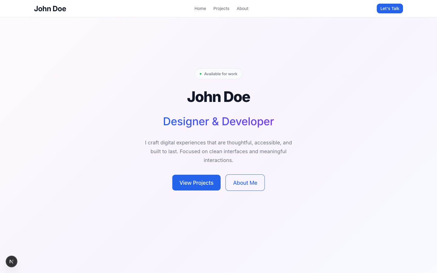 A versatile, modern portfolio for developers, designers, and creatives. Clean layout, bold typography, and a project showcase — ready to customize in minutes.